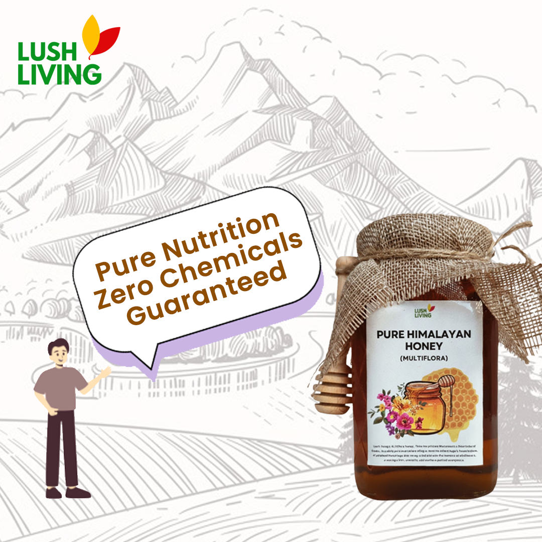 It is sourced from forest belts where beekeepers place wooden bee boxes near wild flowering zones. Bees travel across tall trees, dense shrubs and herbal plants, gathering nectar directly from nature. Lush Living filters the honey lightly to remove impurities but keeps the natural texture and aroma untouched.